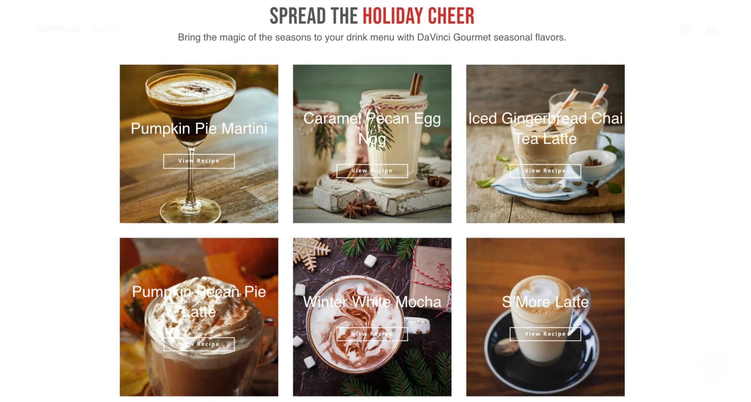 My summer internship at Kerry Group allowed me to personally work with the brand, DaVinci Gourmet. The Holiday Cheers Campaign involved designing the brand’s landing page, Google ads, POS materials, email signatures, copy, etc.